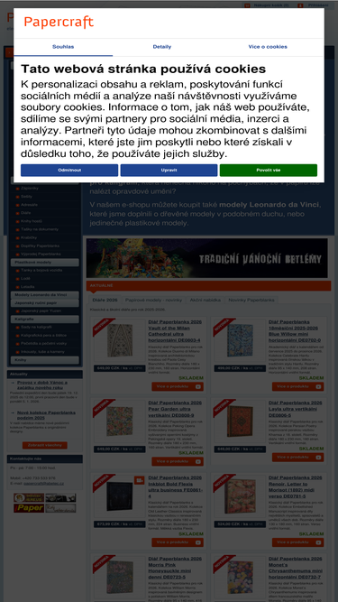 kompletní kolekce všech diářů, adresářů a zápisníků paperblanks, vystřihovánky a papírové modely hradů a zámků, aut, letadel, lodí aj.