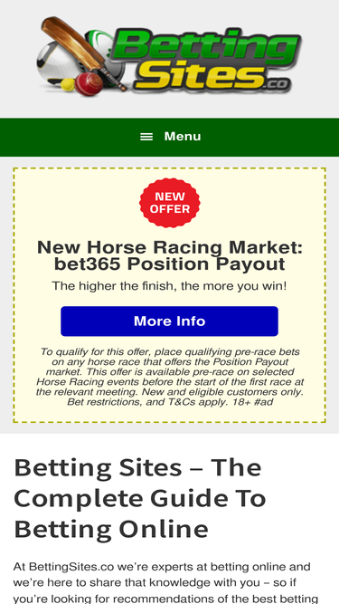 100%At BettingSites.co we're experts at betting online and we're here to share that knowledge with you - so if you're looking for recommendations of the best betting sites or trying to hunt down some free bets, then you've come to the right place. Before we delve into the more detailed information we wanted to quickly
