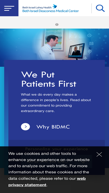 100%Beth Israel Deaconess Medical Center (BIDMC), a part of the Beth Israel Lahey Health system, is a world-class teaching hospital of Harvard Medical School.