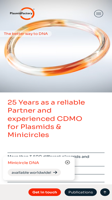 93%PlasmidFactory is the leading contract manufacturer and service provider for plasmid DNA and minicircle DNA, custom DNA, In-Stock DNA for AAV and clinical application