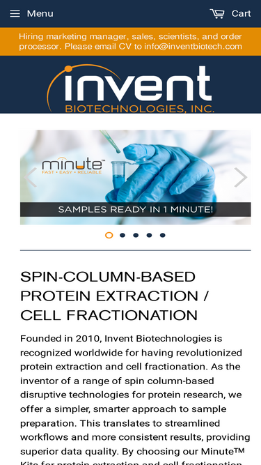 89%Invent Biotechnologies is renowned globally for revolutionizing protein extraction and cell fractionation. We have developed innovative spin column-based technologies for protein research that simplify and enhance sample preparation. Samples accurately represent the natural characteristics of the subjects.