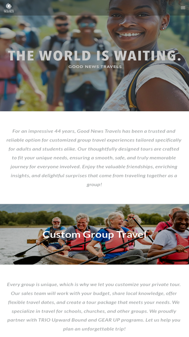 Founded in 1981, Good News Travels specializes in customized group travel for adults, students, and families. With your groups goals in mind, our experienced staff works to ensure a safe and enjoyable trip for all groups.