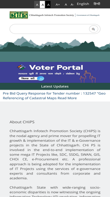 Chhattisgarh Infotech Promotion Society (CHiPS) is the nodal agency and prime mover for propelling IT growth & implementation of the IT & e-Governance projects in the State of Chhattisgarh.