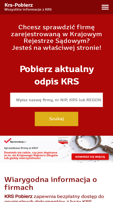 sprawdź wygodnie aktualne i historyczne dane o spółkach, fundacjach, stowarzyszeniach i osobach. znajdziesz tu m.in odpisy z krs, sprawozdania z działalności, status podatnika vat
