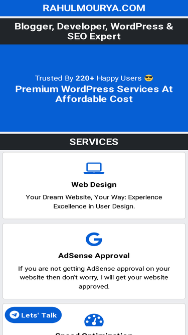 100%Hey beautiful people, my name is Rahul Mourya and I’m from Bareilly, Uttar Pradesh, India. I’m a full-time blogger, Developer, WordPress & SEO Expert.