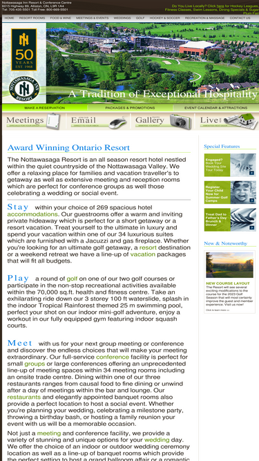 (alliston, ontario) welcome to the nottawasaga resort, our award winning resort hotel. discover our luxury resort and plan your groups conference, family vacation, wedding, golf or hockey event.