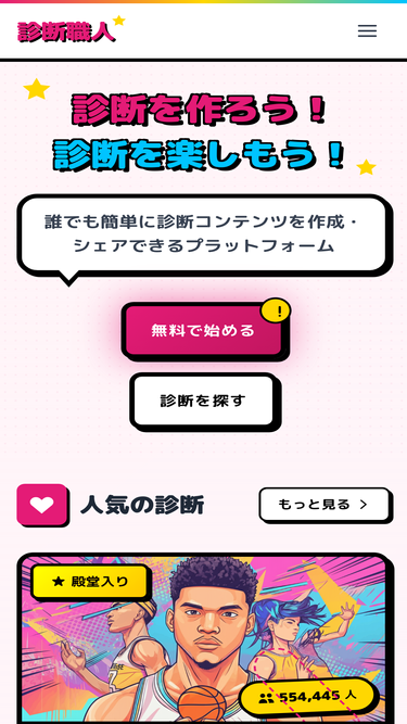 79%診断職人は誰でも簡単に診断が作れるサービスです。4,009件以上の診断が公開中!累計6,422,496回以上プレイされています。