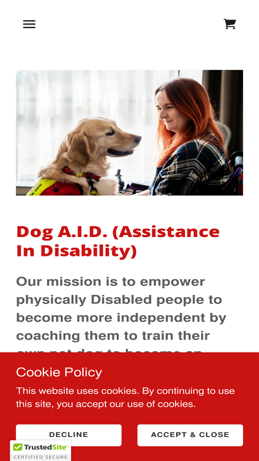 89%Dog A.I.D.is a charity which help train pet dogs to become fully qualified Assistance Dogs, to help their physically disabled owners complete every day tasks.
