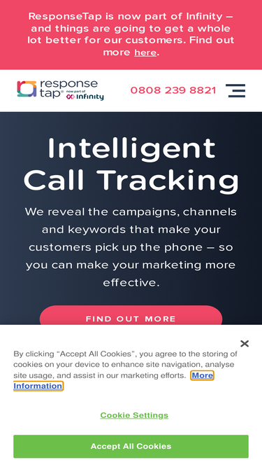 72%with intelligent call tracking from responsetap, you can finally reveal the campaigns, channels and keywords that make your customers pick up the phone. find out more here.