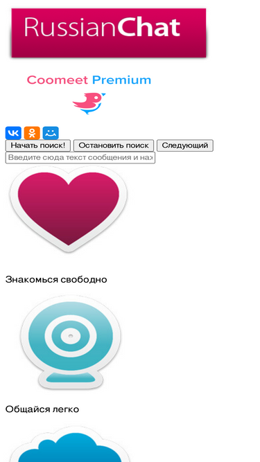 94%russianchat — русская чат рулетка №1 с массой возможностей абсолютно для всех. встречайте приятных незнакомцев с помощью видеочата в россии и за ее пределами, моментальное подключение для знакомств и флирта 24/7.