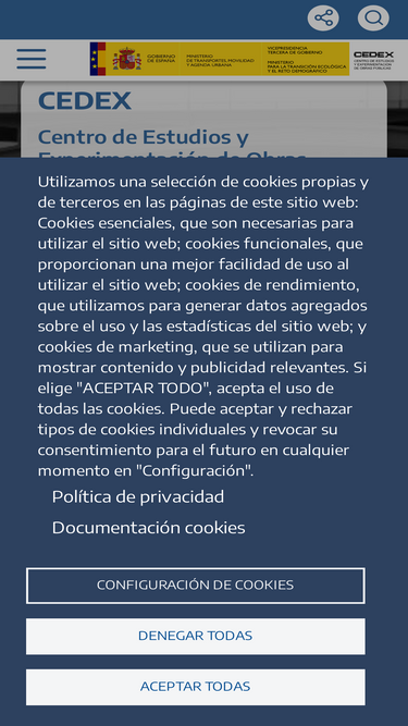 el centro de estudios y experimentación de obras públicas (cedex) nace como organismo autónomo por decreto de 23 de agosto de 1957. está adscrito orgánicamente al ministerio de transportes, movilidad y agenda urbana y depende funcionalmente del ministerio de transportes, movilidad y agenda urbana y del ministerio para la transición ecológica y el reto demográfico. es medio propio de la administración general del estado y sus estatutos que fueron aprobados por el real decreto 1136/2002 han sido modificados en 2005, 2009 y 2011.