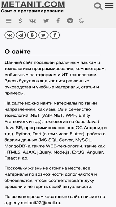 100%metanit.com - сайт о программировании на c#, .net, java, python, golang, dart, flutter, мобильной разработке на android, ios, xamarin, веб-разработке на asp.net, php и javascript, node.js и react