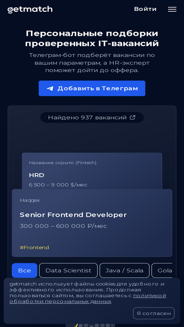 getmatch помогает работодателям найти качественных специалистов, а кандидатам — работу в it-сфере: разработка, тестирование, дизайн, аналитика, менеджмент и др.