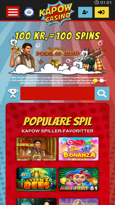 KapowCasino er hele Danmarks online casino. Opret dig i dag og få 100 Spins til Sweet Bonanza Xmas på din første overførsel og hyg dig med over 5.000 online spilleautomater. Vilkår gælder.