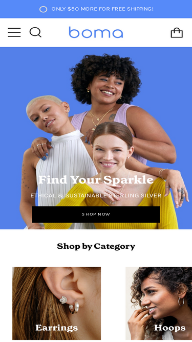 Discover Boma Jewelry's sustainable sterling silver and gold earrings, necklaces, bracelets, and rings. Affordable, timeless jewelry—perfect gifts for moms, daughters, girlfriends, and teachers. Shop meaningful and expressive pieces designed for everyday.