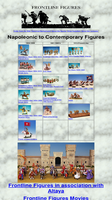 on-line catalogue of frontline figues, a toy soldier manufacturer. we specialise in 54mm figures crimean, zulu, napoleonic, etc.