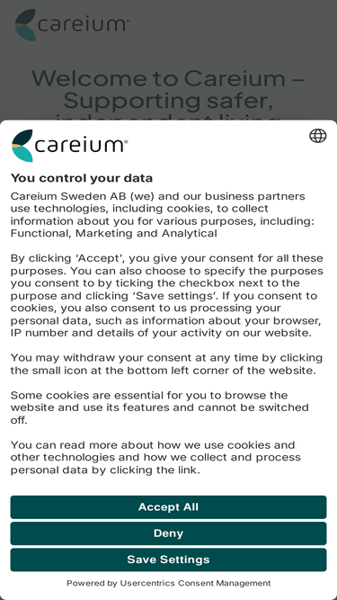 Careium Sweden AB använder cookies på webbplatserna www.careium.com