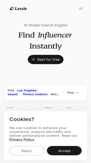 97%Lessie AI is your AI Agent for people search. Find clients, partners, investors, experts & communities across LinkedIn, Twitter, GitHub & more—instantly.