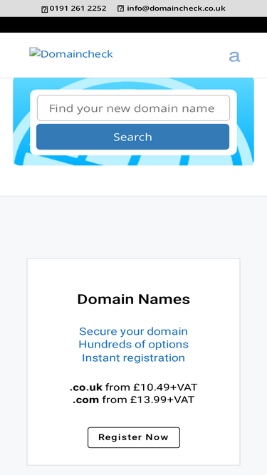 domaincheck offers new tlds, domain name registration, web hosting, email hosting, cloud vps, data centre services and web security. 0191 261 2252