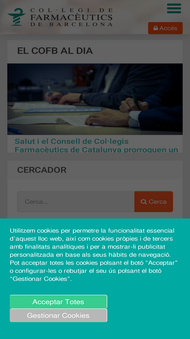 70%el collegi de farmacèutics de la província de barcelona (cofb) és la institució que representa els més de 8.000 farmacèutics que exerceixen la professió en els seus diversos àmbits: hospitals, oficines de farmàcia, atenció primària, indústria, salut pública, laboratoris d'ànalisis clíniques, investigació i docència... i posa al seu abast els serveis i activitats necessàries perquè puguin ampliar els seus coneixements, desenvolupar les seves capacitats professionals i contribuir de forma decisiva a millorar la salut de la població.