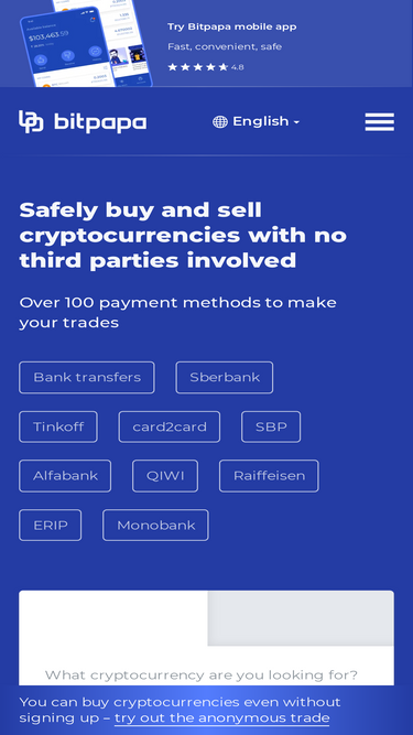 69%bitpapa is simple and safe way to buy bitcoin, ethereum, usdt and other cryptocurrencies with over 100 payment methods!