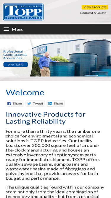 Innovative Solutions for H₂Woes SHOP PRODUCTS Introducing TOPP Industries Play Video Your Trusted Partner in Wastewater Management For more than 35 years, TOPP Industries has been a dependable leader in manufacturing eco-friendly, cost-effective solutions for wastewater management. With a state-of-the-art facility spanning more than 300,000 square feet, we operate around the clock to make certain […]
