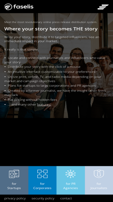 87%faselis is the most revolutionary yet cost-efficient online press release distribution system. with its readymade media lists, you can quickly pitch to the right journalist at the right time. faselis also provides international press release distribution.