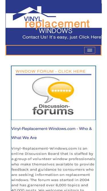 VRW is your source for unbiased information on replacement windows. Visit our discussion board to read up on the experiences others have had with a project just like yours. You can also post questions to the pro's that man the board and get great insight and feed back.
