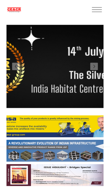 CE&CR, a renowned construction journal with a 35 year old heritage in civil engineering & construction vertical is instituting their very first CE&CR Annual Awards on 17th of June ‘22 in New Delhi. CE&CR Awards is a humble effort by one of the leading construction journals to honour