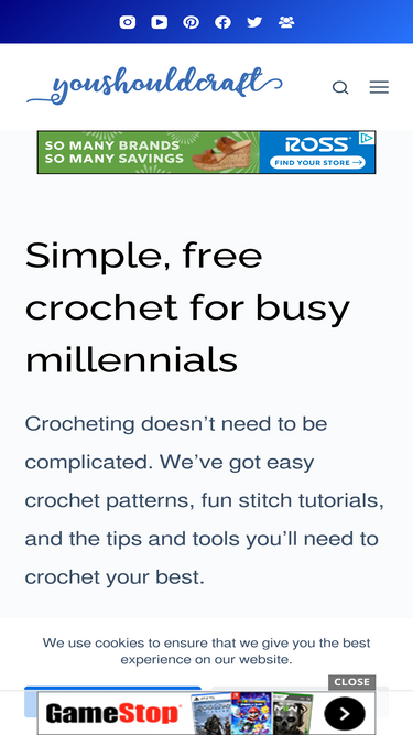 YouShouldCraft.com features simple, free crochet patterns for busy millennials. You can also find crochet stitch tutorials, tools, and tips.