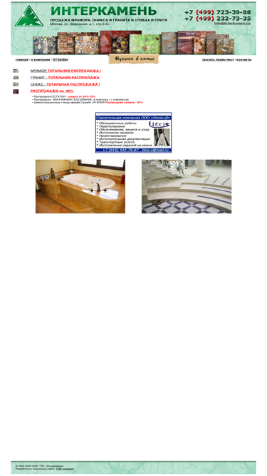 81%продажа мрамора, гранита, оникса и агломерата ооо тпк «интеркамень» - крупнейший поставщик на территории рф.