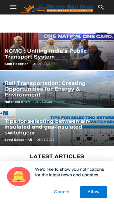 73%Metro Rail News is a monthly magazine published with the deep focus on Urban mobility, Mass Rapid Transit Systems, and Metro Rail Project. Subscribe Now!