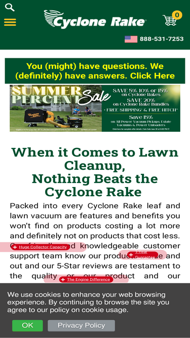 76%The Cyclone Rake yard vacuum is the premiere leaf and lawn vacuum in America. Hand built and supported by an amazing and friendly Customer Service Team, it makes tough jobs easy.