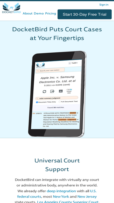 84%docketbird is the most advanced application for organizing court documents and docket sheets.