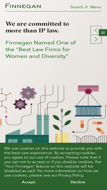 Finnegan is a true full-service intellectual property firm handling patent, trademark, copyright, and trade secret law, with experts in every area of IP and technology.