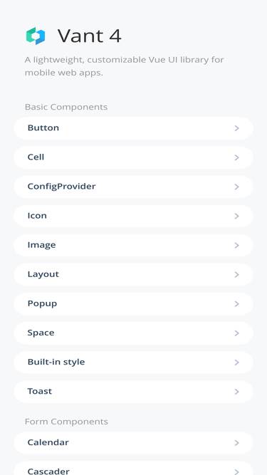 a lightweight, customizable vue ui library for mobile web apps.