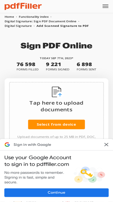 Sign pdf online. pdfFiller is the best quality online PDF editor and form builder - it’s fast, secure and easy to use. Edit, sign, fax and print documents from any PC, tablet or mobile device. Get started in seconds, and start saving yourself time and money!