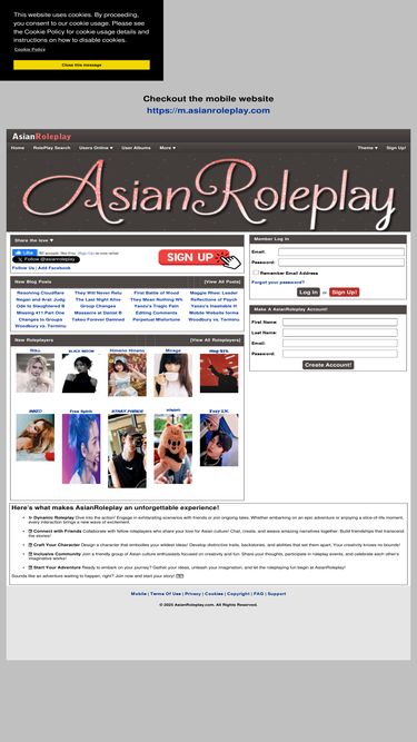 AsianRoleplay, a social network for fans of all things Asian, including entertainment from Korea, Japan, Taiwan, China, Singapore, Philippines, Indonesia, Malaysia, and many others. K-Pop, J-Pop and other east asian entertainment stars are popular in this genre.