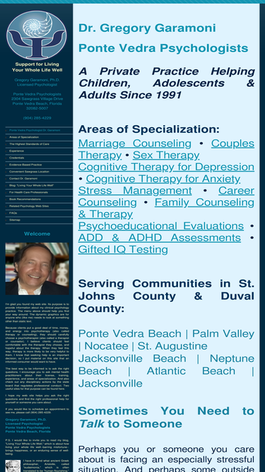 ponte vedra psychologist dr. gregory garamoni has a well-established private practice in ponte vedra beach, providing therapy and counseling for children, adolescents and adults since 1991.