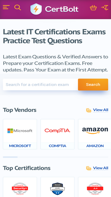 85%pass your next it certifications exams fast with certbolt practice test questions, exam dumps, study guides and training courses. free and fast updates, 100% accurate and verified answers.