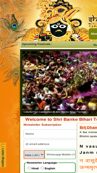 shri bankey bihari mandir, vrindavan and swami shri haridas' beloved thakur shri banke bihariji maharaj's website.