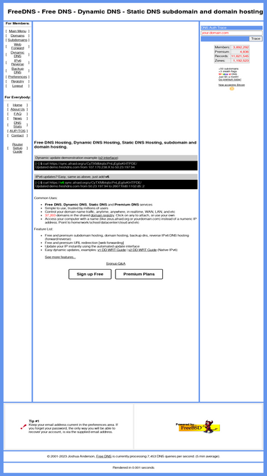 100%free dns hosting, lets you fully manage your own domain. dynamic dns and static dns services available. you may also create hosts off other domains that we host upon the domain owners consent, we have several domains to choose from!
