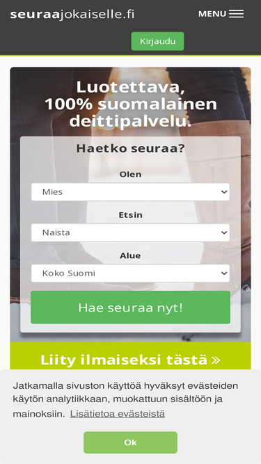 seuraajokaiselle.fi on 100% kotimainen ja turvallinen deittipalvelu. löydä seuraa jo tänään!