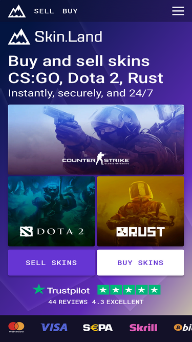 84%at skin.land site⛰️ you can buy and sell skins for cs2, cs:go, dota 2 and rust❗ fast and secure transactions✔️ transparent prices✔️ and a huge inventory☝ best cs:go skin site skin.land