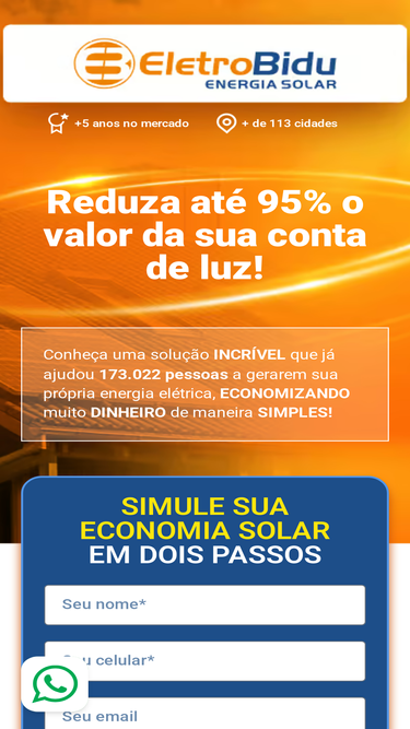 78%Que tal zerar sua conta de luz? Energia Solar descomplicada para sua residência ou empresa. Cuidamos do financiamento a instalação com garantia Descarbonize!