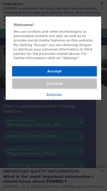 Learn about ENBREL® (etanercept), a treatment option for autoimmune diseases like moderate to severe rheumatoid arthritis, psoriatic arthritis, and more. See Full Prescribing & Safety Info.