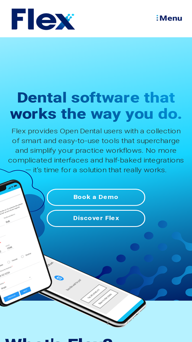 86%Dental software that works the way you do. Flex Dental provides Open Dental users with a collection of smart and easy-to-use tools that supercharge and simplify your practice workflows. Flex Pay, Flex Schedule, Patient Forms, Patient Communication, Mobile, Phone Integrations, and Analytics.