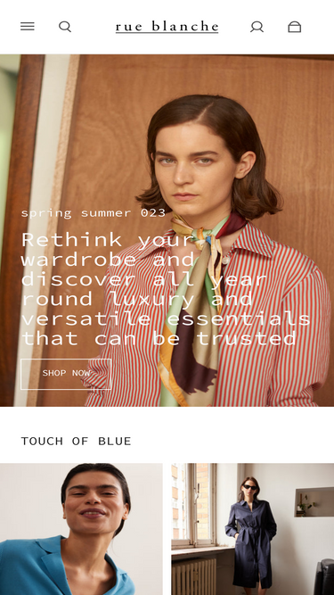 Rue Blanche was founded in 1987. Our Belgian label addresses fashion with verve and generosity by creating garments and accessories with its own timeless style.