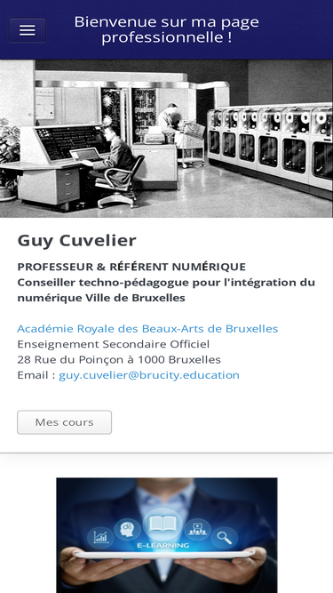 Page professionnelle de présentation de Guy Cuvelier - Professeur et responsable informatique de l'Académie des Beaux-Arts secondaire de Bruxelles