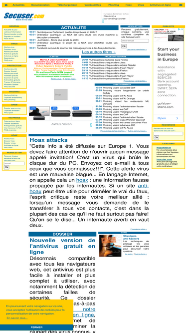 54%actualité de la sécurité informatique, fiches virus et hoax, alertes par email, antivirus gratuit en ligne, protection de vos données et de votre vie privée.